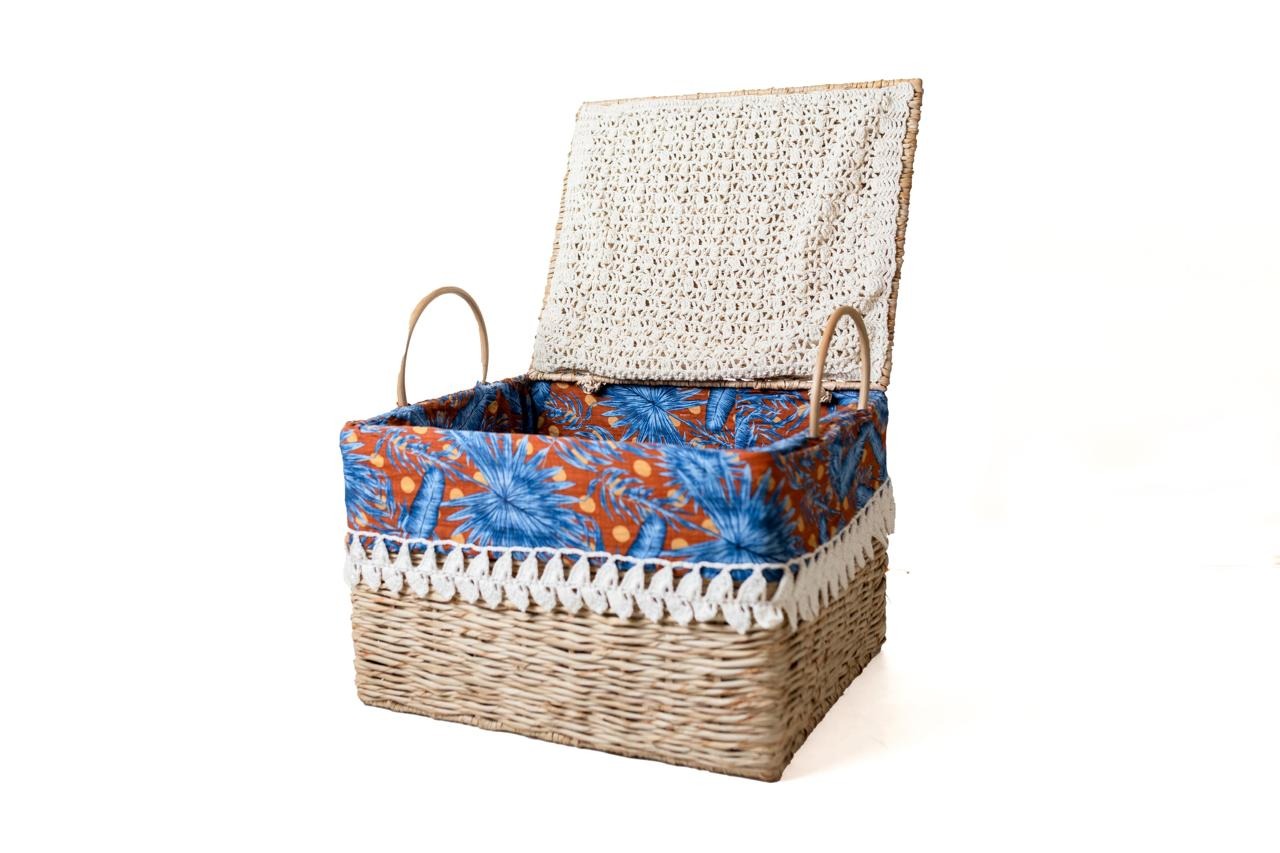 Material – Mateba, forrado com pano havaiana de Algodão e renda em crochet de linha 100% Algodão