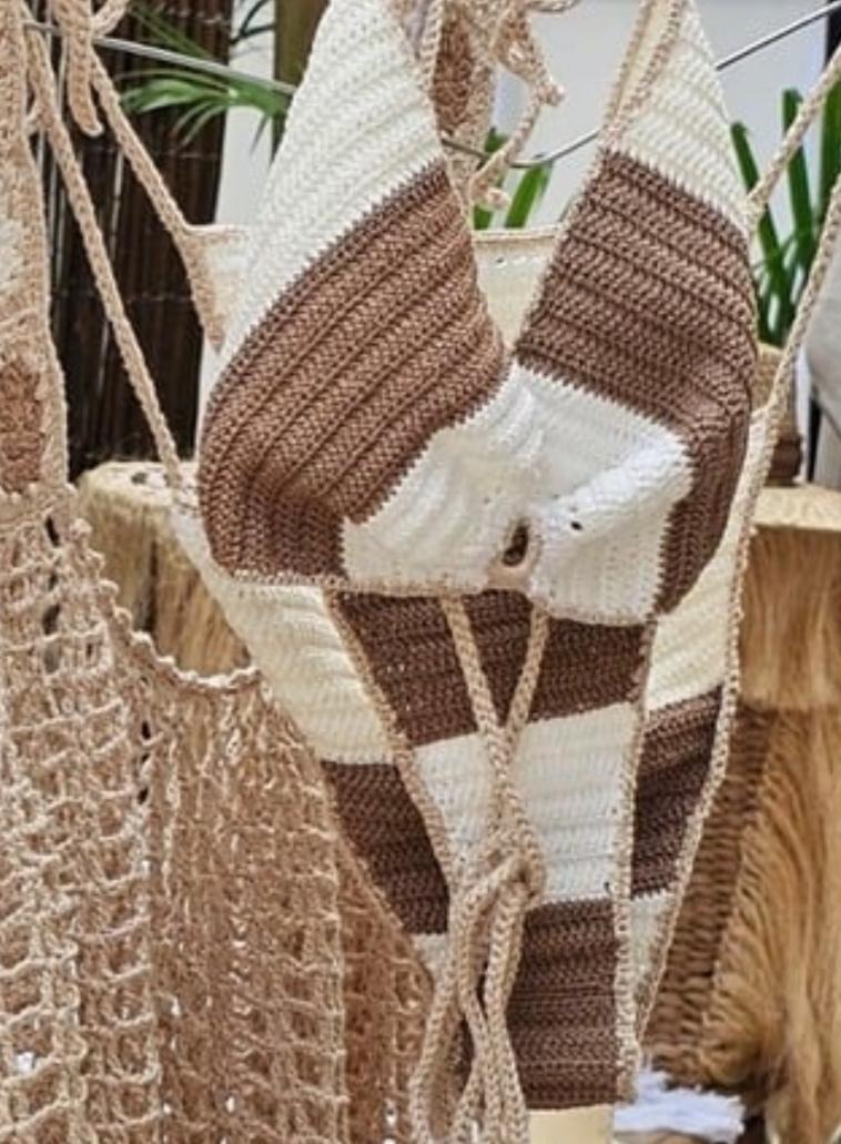 Material – linha impermeável própria para peças usadas na água. Cor – misto das cores usadas na Colecção.Orquídea Regenerativa (branco, bege, castanho escuro castanho claro).