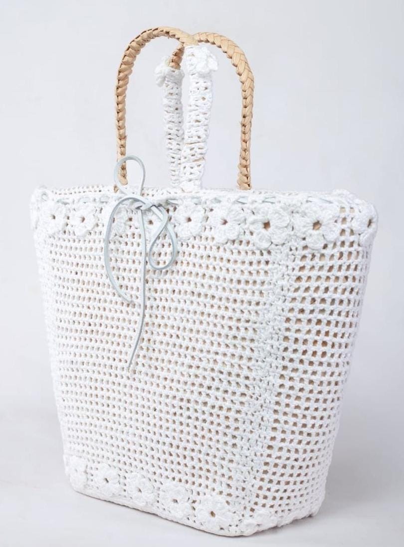 Pasta com forro branco interior e exterior em crochet e fio de couro branco. Materiais : mateba, fio de couro linha 100% algodão e linha impermeável própria para peças usadas na água.